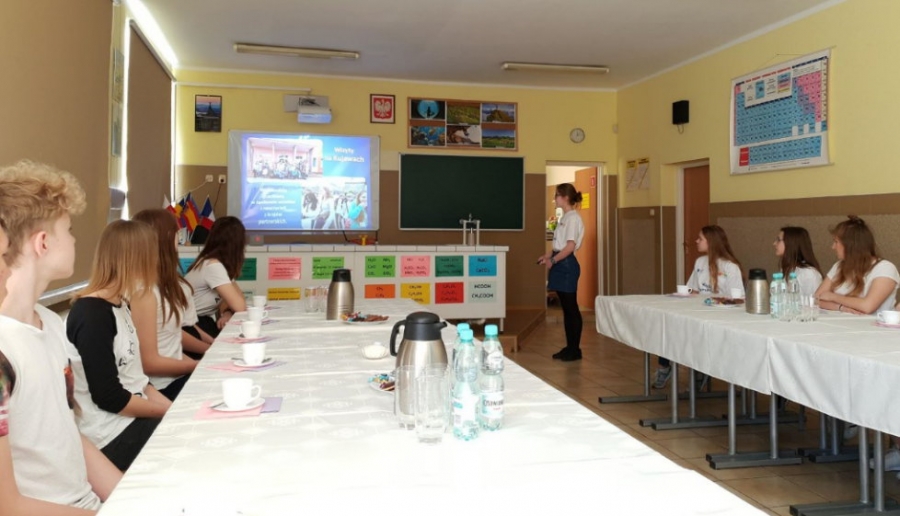Uczniowie z klubu europejskiego, którego opiekunką jest nauczycielka Olga Pawnuk – przygotowali pokaz multimedialny i zaprezentowali dorobek szkoły w realizacji programów europejskich. Ich koordynatorem jest nauczycielka Gimnazjum Mariola Piasecka.